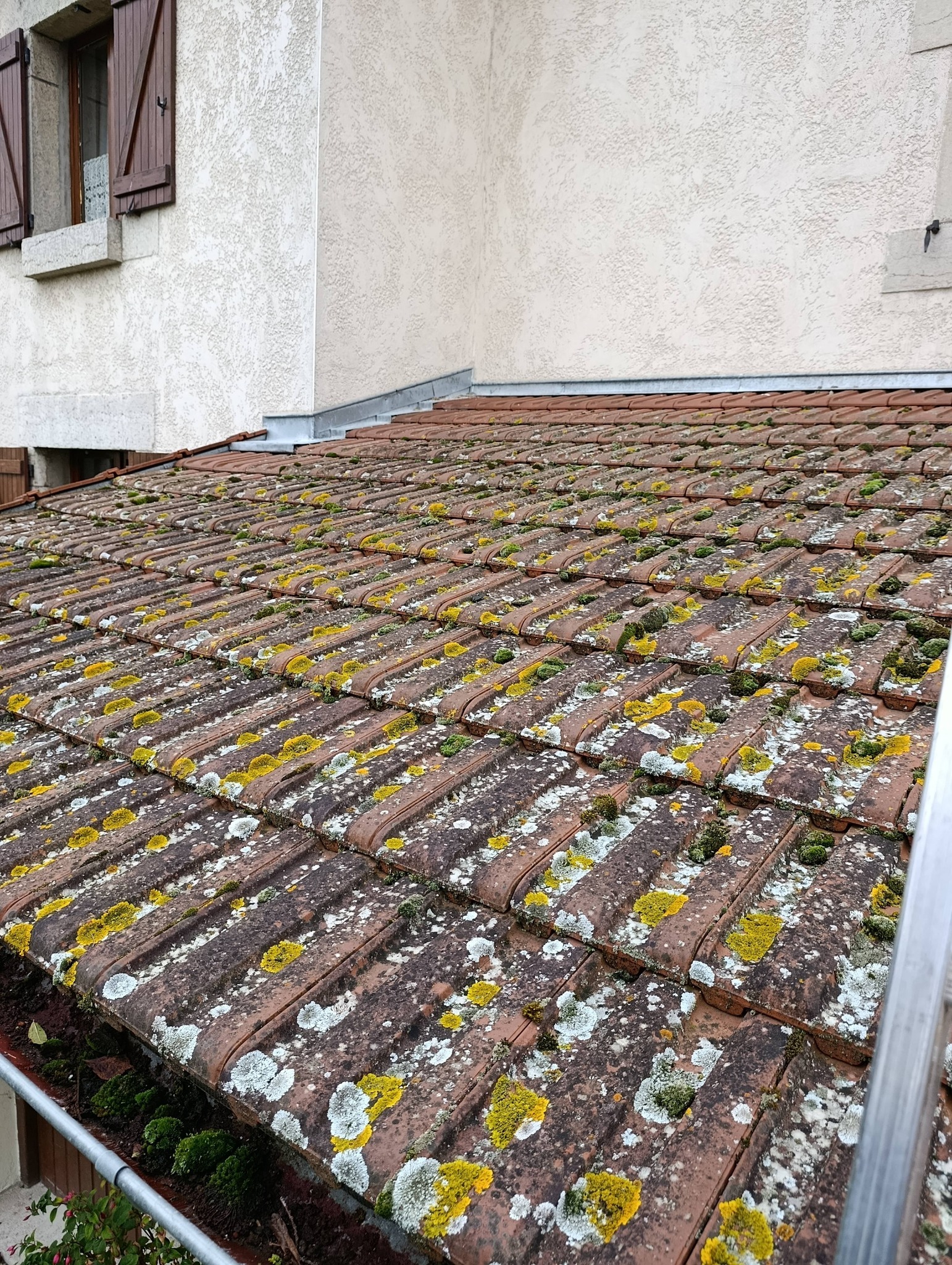 Le démoussage permet de retirer les mousses, lichens et salissures qui fragilisent les matériaux de couverture.